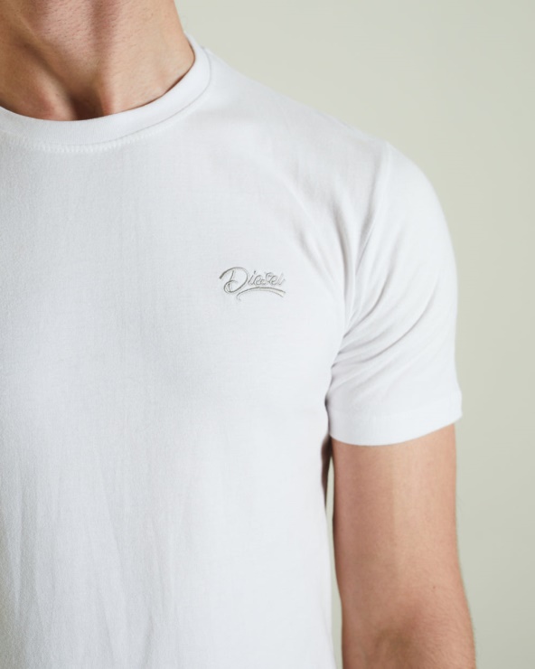 T-shirt Basique 100 % Coton Brossé Doux Avec Broderie Diesel Sur La Poitrine Et étiquette Tissée Diesel Sur L'ourlet. Coupe Classique à Col Ras Du Cou. Le Mannequin Porte Du M. Il Est Recommandé De Garder Votre Taille Habituelle. 100 % Coton.