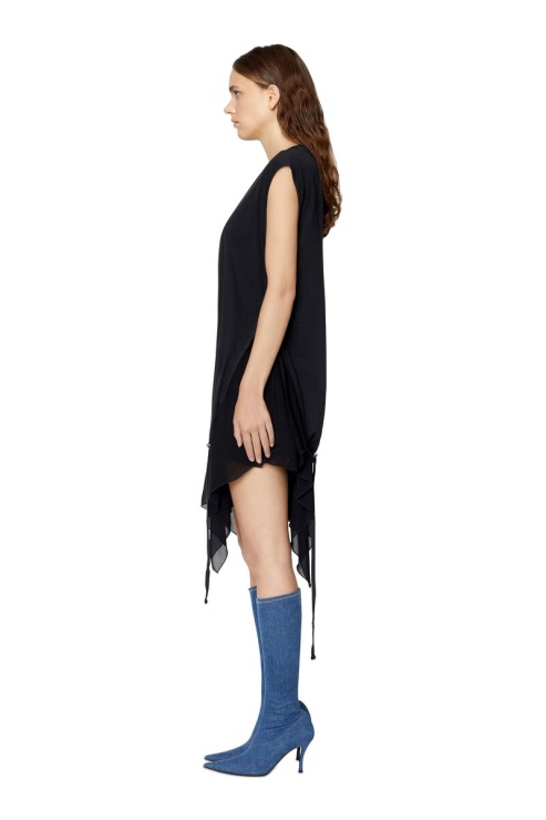 Robe Pull Ample Confectionnée En Jersey De Coton. Ce Modèle à Teinture Pigmentée Est Doté D'un Ourlet Fendu à Cordon De Serrage Bordé De Mousseline Pour Un Look Asymétrique. La Poitrine Est Brodée De La Phrase « By Diesel Pour Votre Satisfaction ».