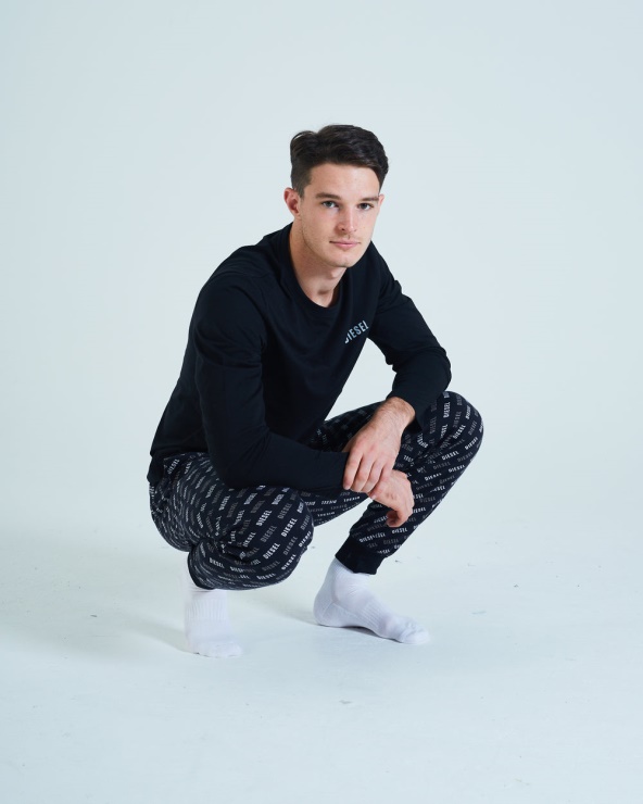 Ensemble De Détente En Coton Super Doux Avec Un Bas Imprimé Du Logo Diesel Avec Un Ourlet À Revers Et Un Haut à Manches Longues De Couleur Contrastée